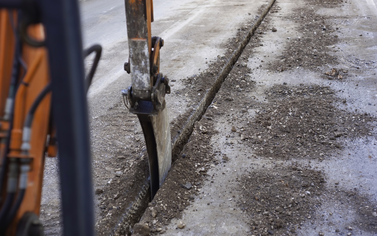 Trenching involves digging a trench only up to 30 cm deep into the pavement or road where conventional cable protection pipes or flat liners with the corresponding fibre optic cables are laid. The cable trench is filled in immediately after laying. A frost-proof, temporarily flowable, self-compacting building material is then used as the backfill material. Thus, traffic obstructions are only of short duration.