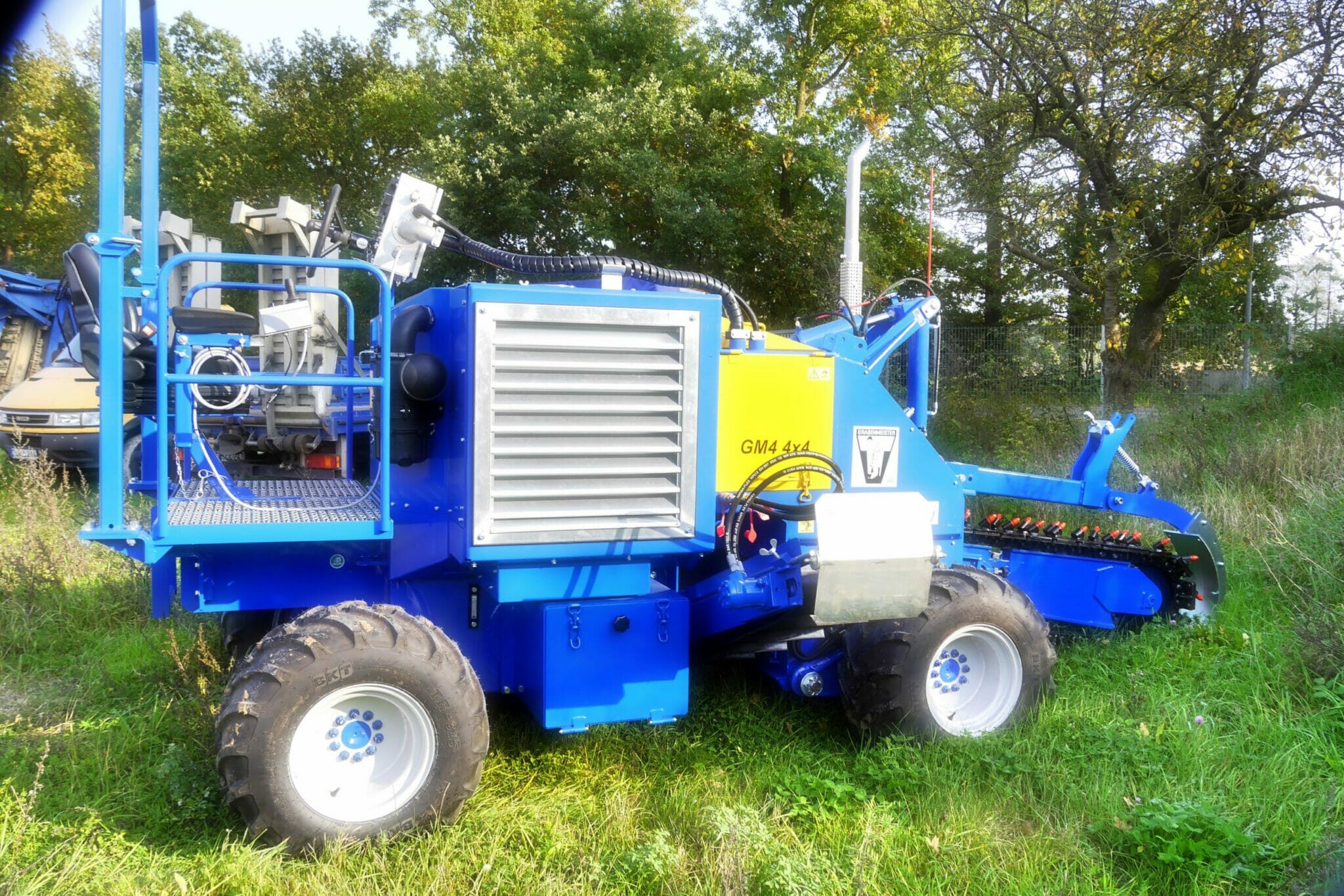 Die Grabenfräsen der GM 4 Allrad Serie sind dieselbetriebene und selbstfahrende Allrad-Grabenfräsen. Sie besitzen ein niedriges Eigengewicht und garantieren so eine geringe Bodenbelastung. Die Tilt-Einrichtung kann seitliches Gefälle bis 15 Grad problemlos ausgleichen, was eine enorme Hilfe gerade in hügeligen Regionen ist.